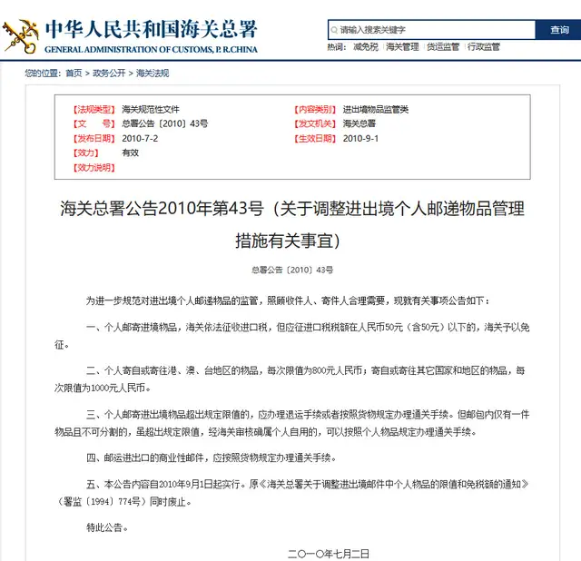 海關(guān)總署的這項(xiàng)新政策放寬了個(gè)人物品郵寄的限值,便利了跨境購(gòu)物
