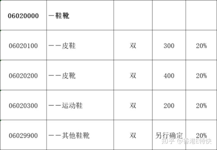 我們看看完稅價格表,我們網(wǎng)站價格板塊都有完稅價格下載鏈接,完整excel表格可以自助下載。下面我們以鞋子為例,給大家大概講解一下。
